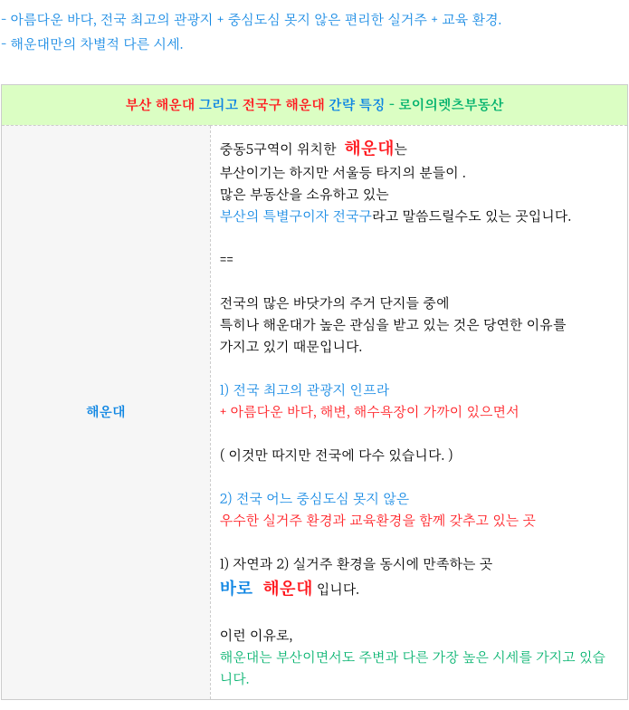 * 해운대, 해운대라는 최고의 입지와 시세를 가진 곳!