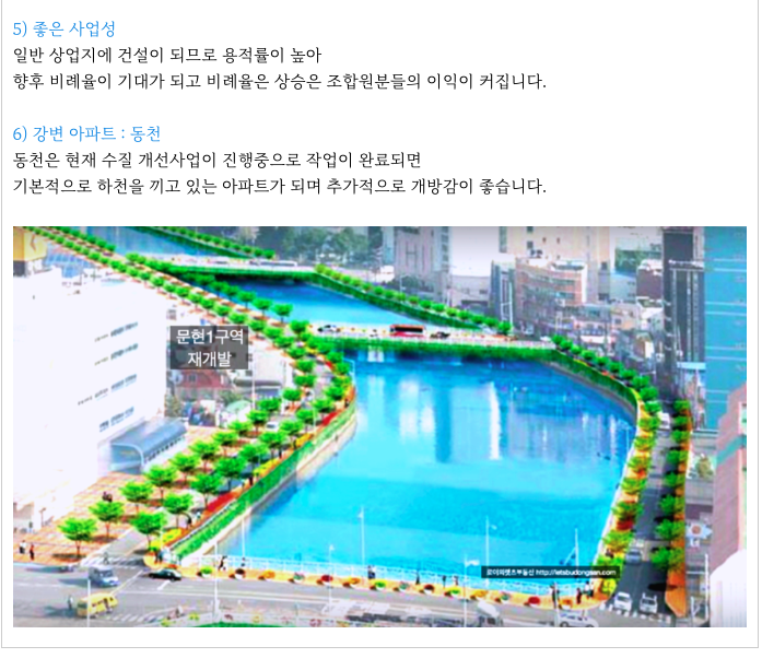 구역 좌측으로 수질개선작업중인 동천이 맞붙어 있어