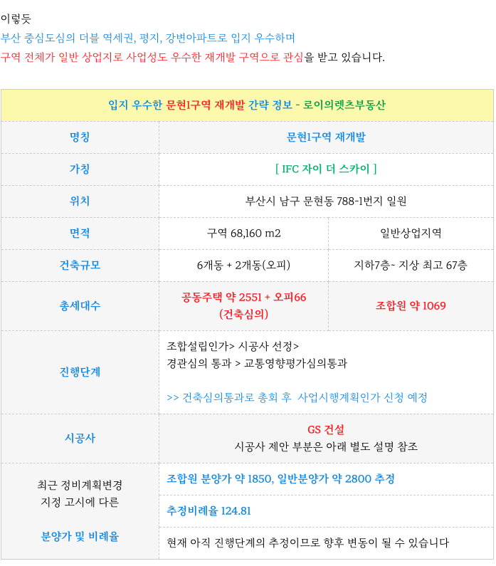 문현1구역 재개발 - 현 가능 매물 & 일정 & 특징
