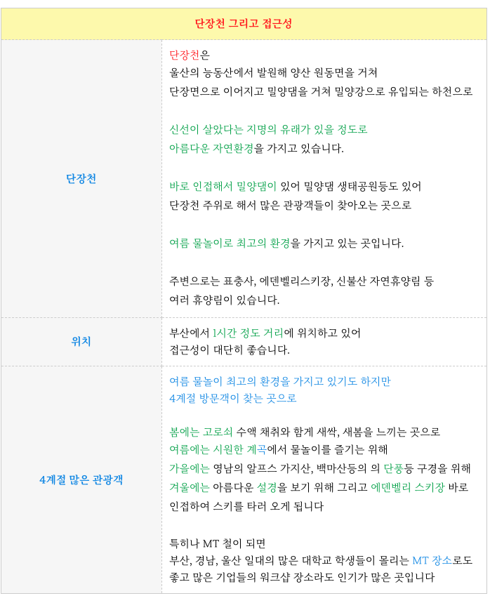 여름 물놀이 최고 - 밀양 단장천 접한 펜션 건물 정보 정리해 드리겠습니다.