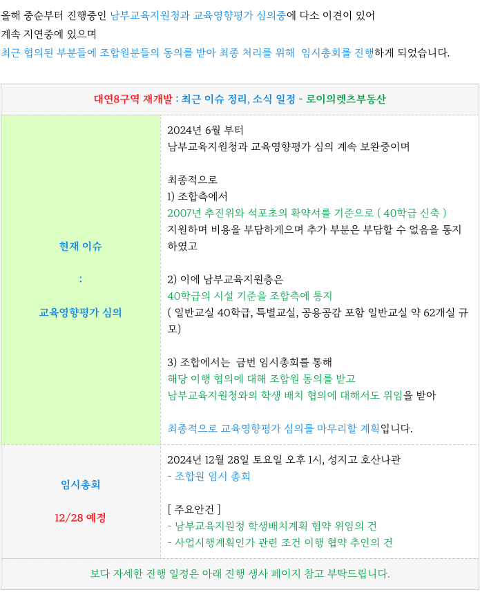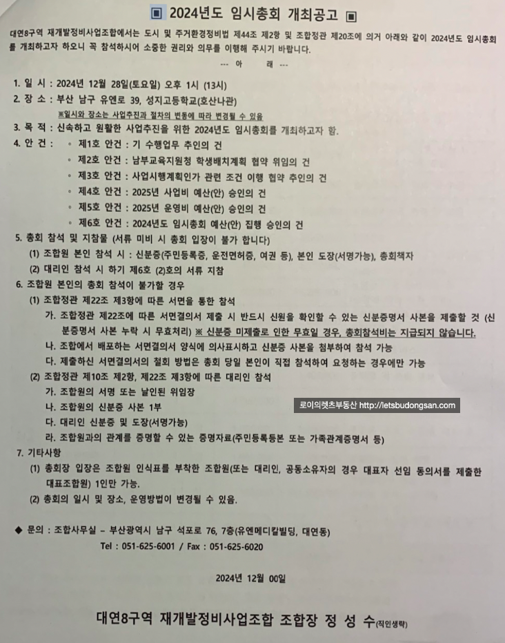 대연8구역 재개발 은 12월 28일 조합원 임시총회를 앞두고 있습니다.
