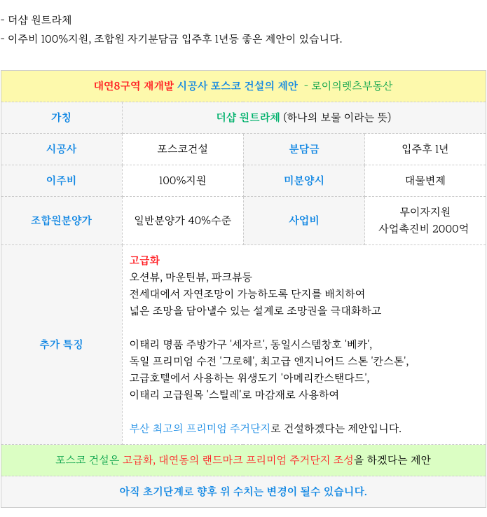 대연8구역 재개발 시공사 포스코 건설의 제안 내용 소개 드립니다.