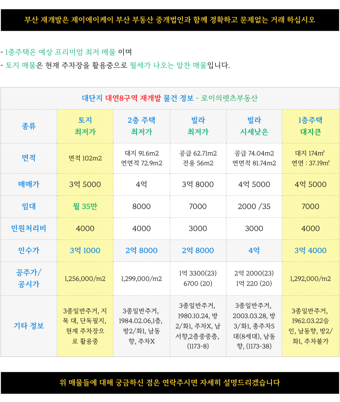 부산 전역 재개발에 대해 궁금하신 점은 방문 또는 연락주시면 자세히 설명 드리겠습니다.
