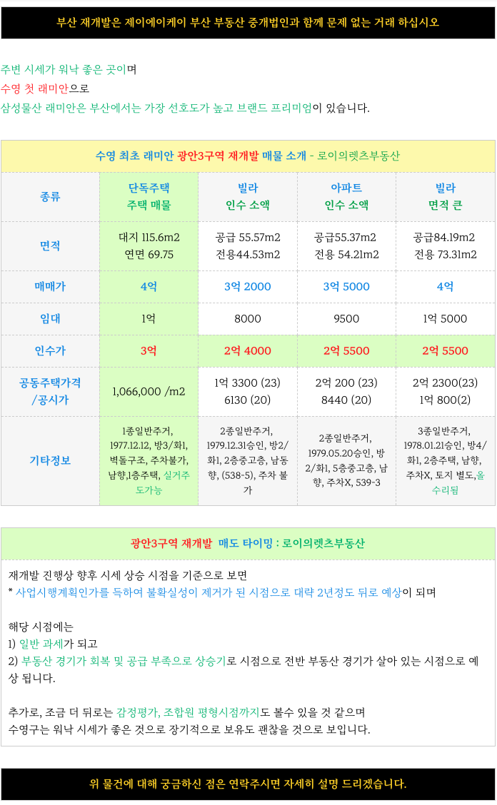 광안3구역 재개발 가능한 추천 매물 소개해 드리겠습니다.
