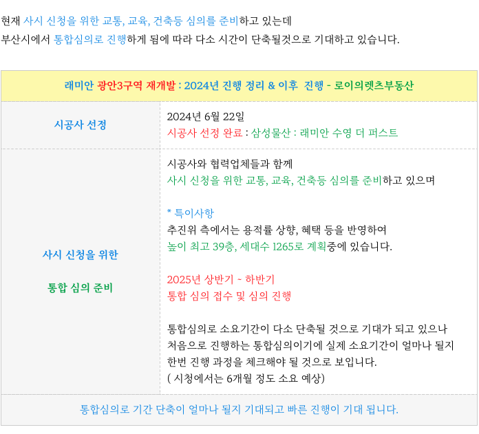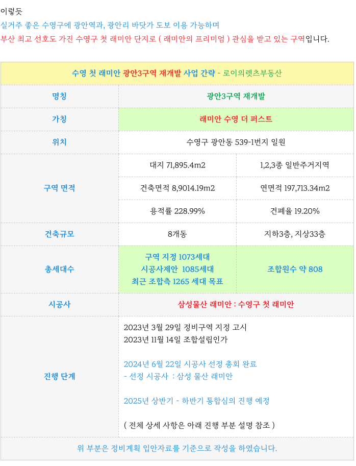 광안3구역 재개발 - 20254년 진행 정리 및 이후 그리고 현 매물