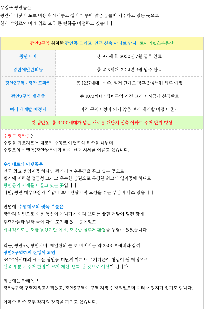 수영구 광안동의 주변 변화 상황에 대해 간략 소개해 드리겠습니다.