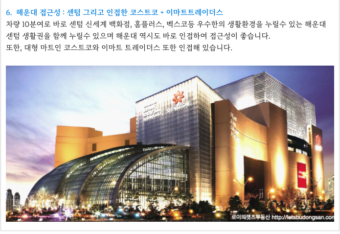 - 센텀생활권 : 센텀 그리고 해운대 인접한