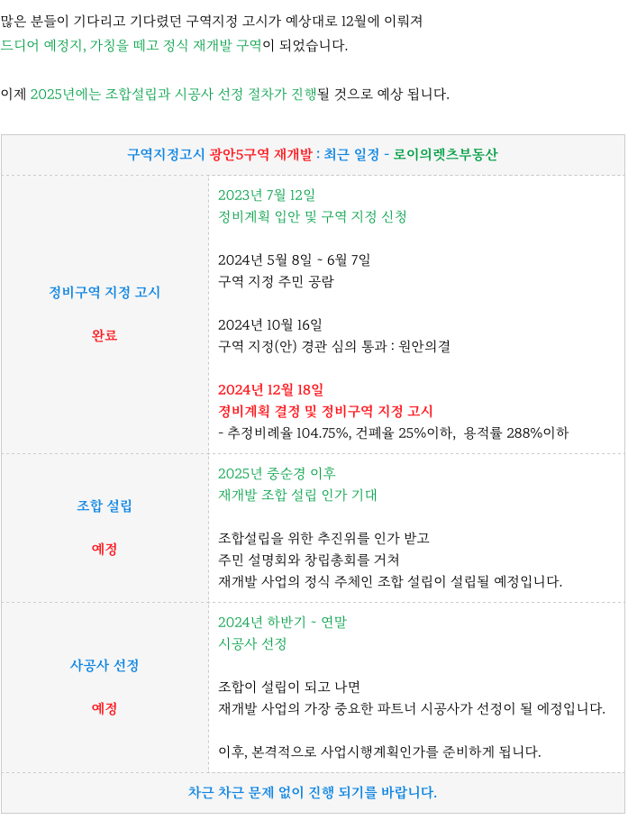 역세권 광안5구역 : 일자별 진행 사항 & 향후 에상 일정 정리등 추가 정보는 아래 페이지를 참고 부탁드립니다.