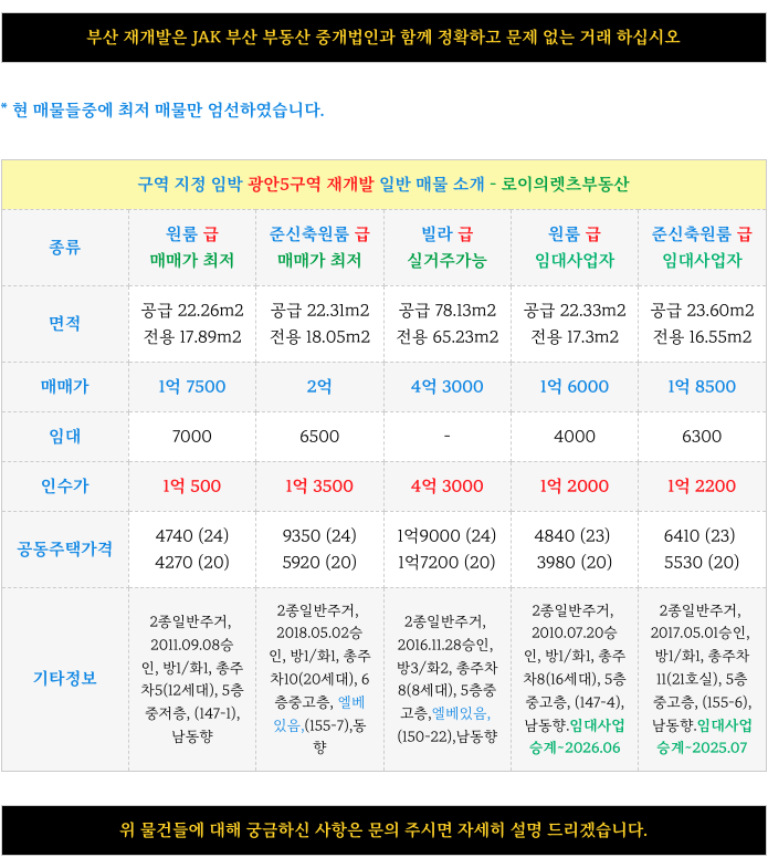 역세권 광안5구역 현재 가능 최저 매물 정리해 드리겠습니다.