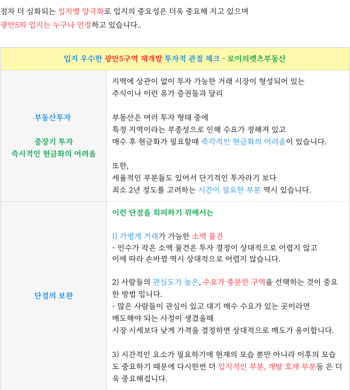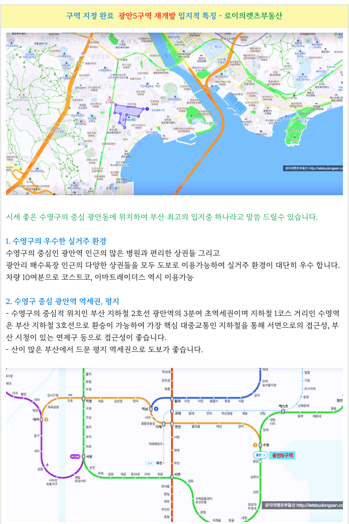 역세권 광안5구역 부동산 투자적 관점으로의 장점을 간략 소개 드립니다.