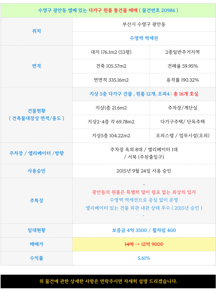 세번째 ) 수영구 광안동 원룸 건물 ( 물건번호 20986 )
