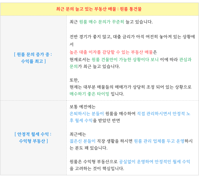 최근 원룸 매수 문의가 꾸준히 늘고 있습니다.