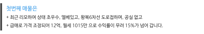 - 월세 1015만원이며 수익률 15%!!