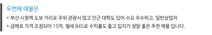 부산 경남 건물 토지 상가 주택 등 부동산 물건 투자 및 물건 접수 받습니다.