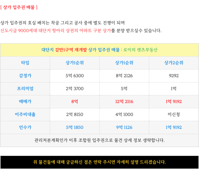 [ 부산, 양산, 경남 / 상가 / 건물 / 토지 / 재개발 / 재건축 전문으로 신속하고 정직하게 거래 합니다. ]