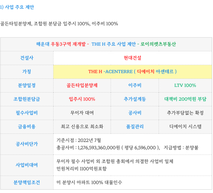 우동3구역 재개발 시공사 현대건설 주요 제안 부분 정리하였습니다.