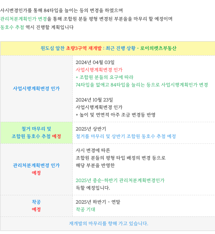 상반기에는 조합원 동호수 추첨도 앞두고 있습니다.