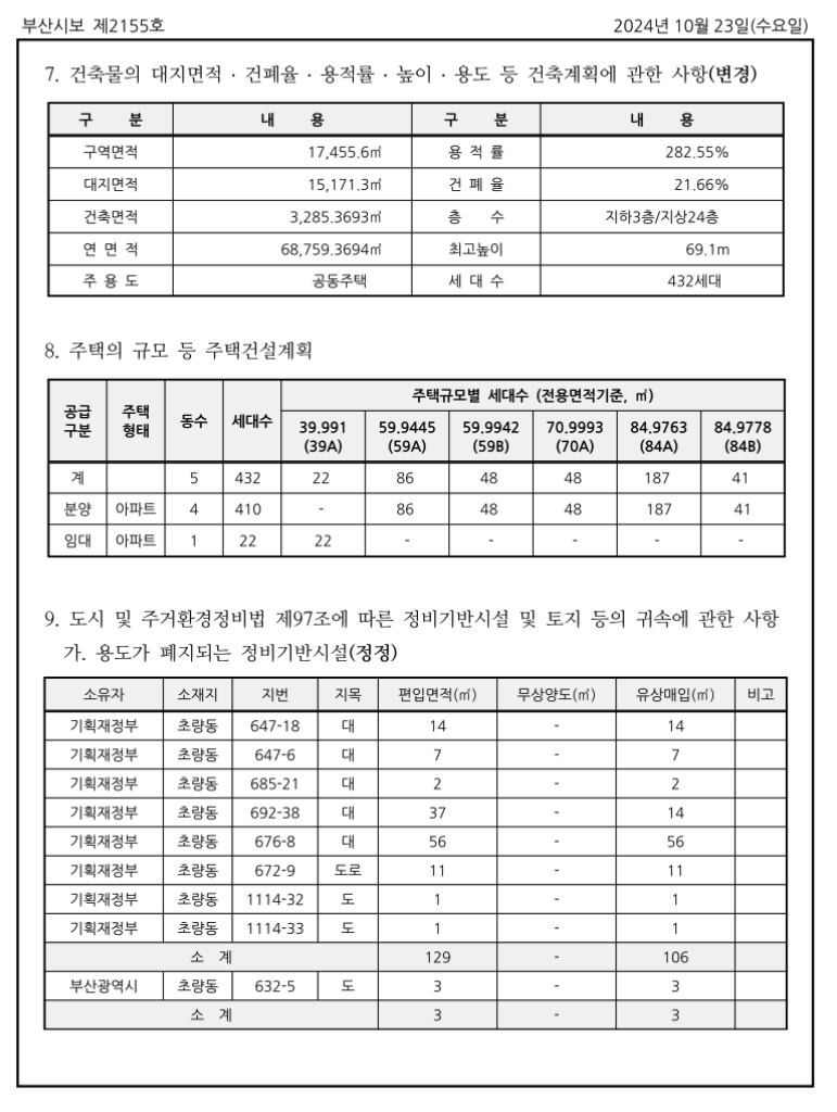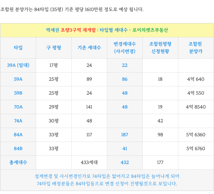 84타입을 늘리는 세대수 변경을 진행하였고 이에 따라 사시변경인가를 받았으며