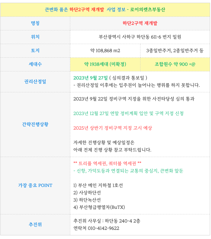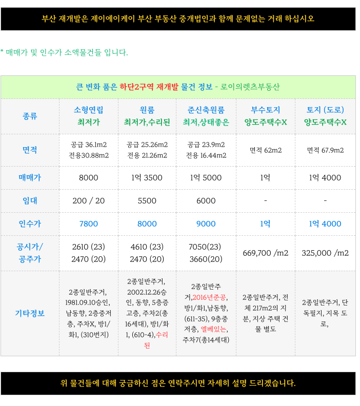 부산 전역 재개발에 대해 궁금하신 점은 방문 또는 연락주시면 자세히 설명 드리겠습니다.