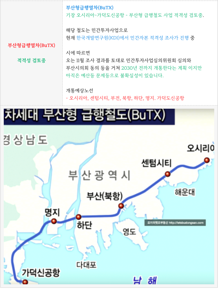 3개의 환승센터가 확정적으로 될 예정이며 추가로 부산형급행열차까지 계획중에 있습니다.
