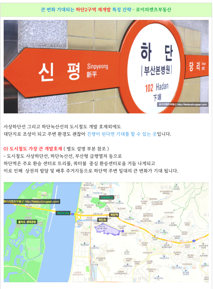 하단2구역 재개발 하단역 도시 철도 개발 호재 소개해 드리겠습니다.