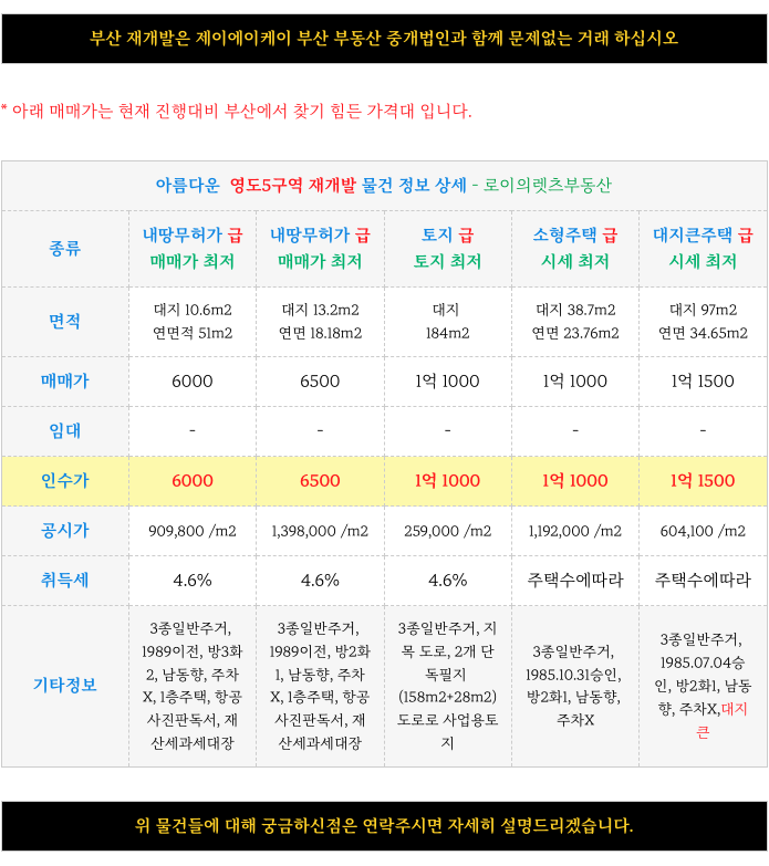 영도5구역 재개발 새롭게 접수된 최저 소액 매물등 정리, 소개 드리겠습니다.