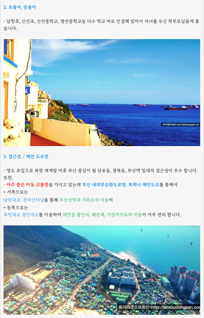 - 개발호재 많은 변화 기대되는 영도