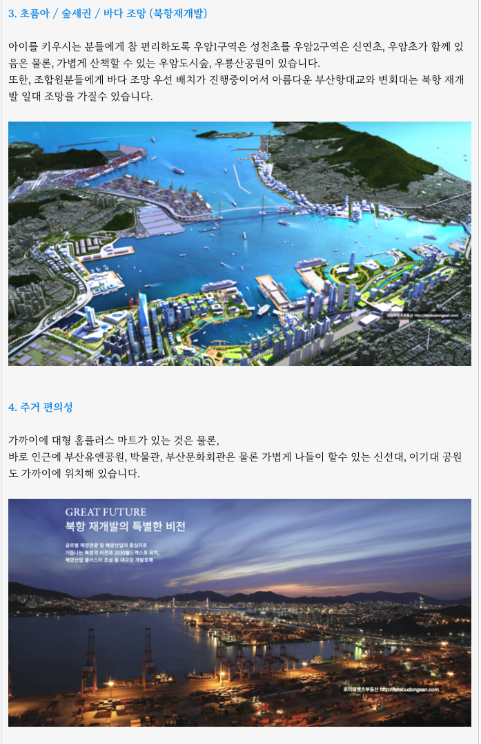 - 초품아, 숲세권, 가격경쟁력, 바다 조망 (북항재개발)