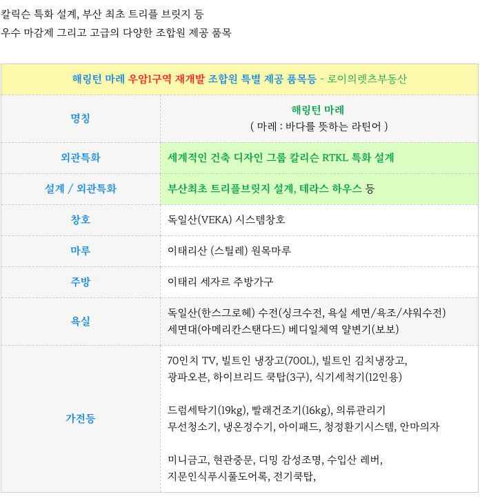 - 부산 최초 트리플 브릿지 설계, 칼리슨 외관특화 & 고급화
