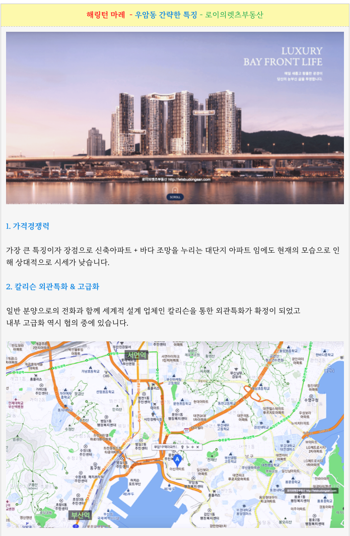 안녕하세요 로이의렛츠부동산 ( JAK 제이에이케이 부산 ) 입니다. 오늘은 우암1구역 재개발 해링턴 마레...
