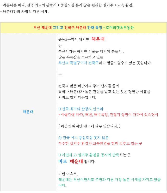 중동5구역 재개발 위치한 해운대, 해운대만의 특징을 간략 소개해 드리겠습니다.