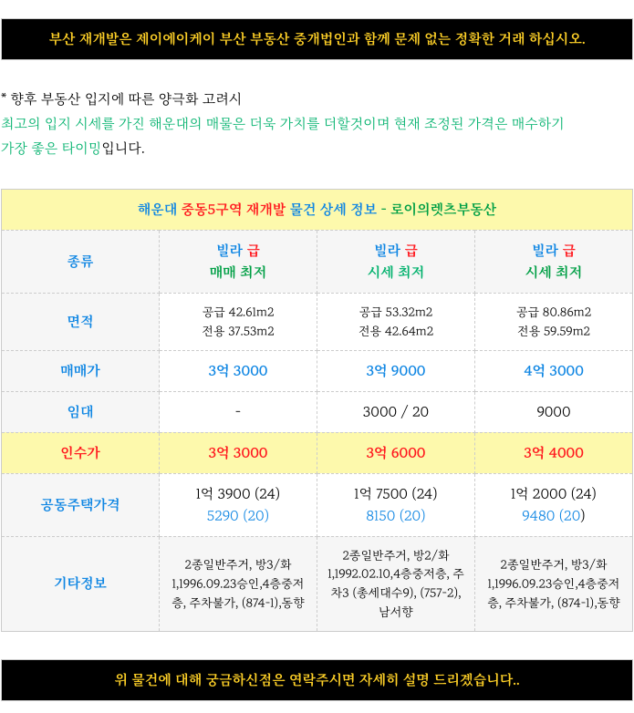 해운대 중동구역 : 현재 급매 매물 정리 드리겠습니다.