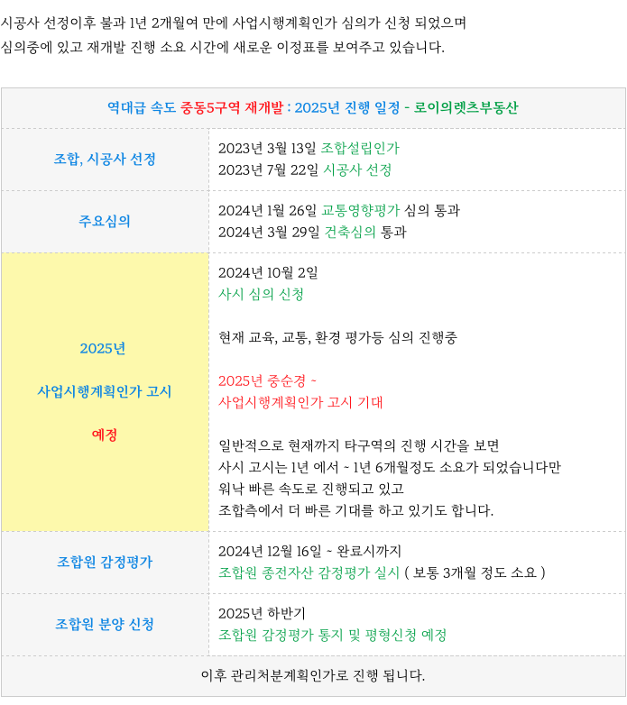 중동5구역 재개발 : 최근 진행과 2025년 진행 일정 간략 정리 드립니다.