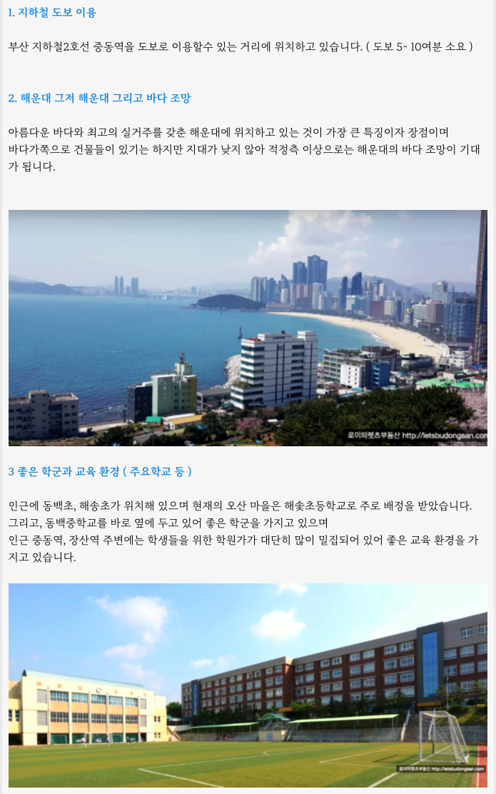 + 사실 해운대에서는 주상복합 이나 소규모 단지가 많아 내두 단지가 다 협소한 편입니다