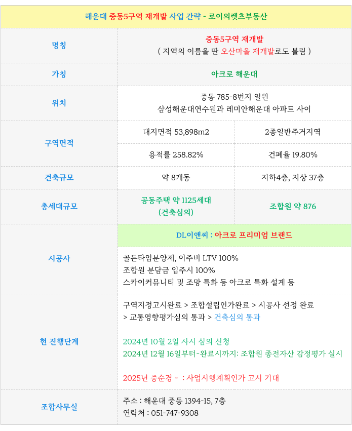 해운대 중동5구역 재개발 : 현 급매 매물 & 예상일정