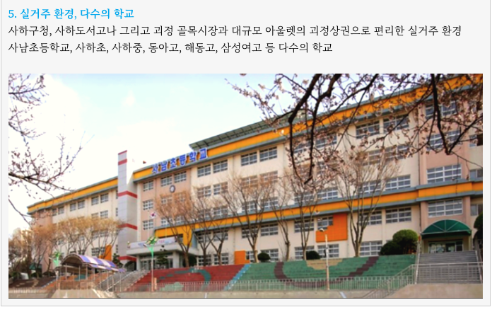 도보거리로 당리중, 사하중, 동아고, 해동고 동 많은 학교들이 주변에 위치해 있어 좋습니다.