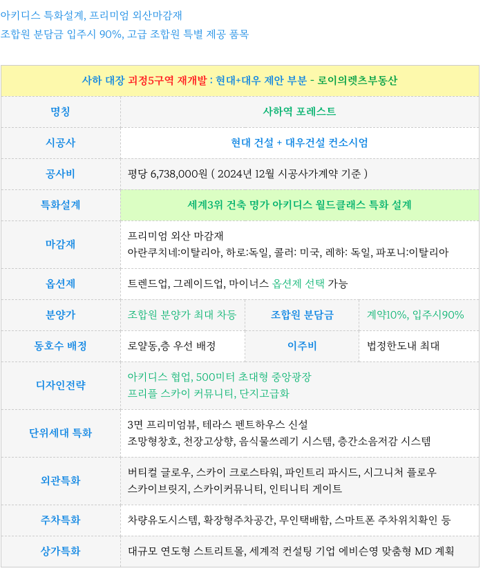 사하대장 괴정5구역 시공사 주요 제안 부분 소개해 드리겠습니다.