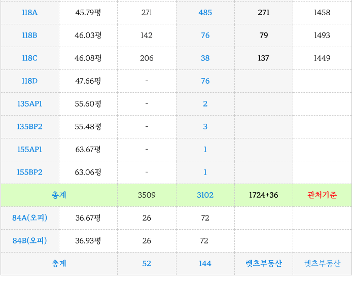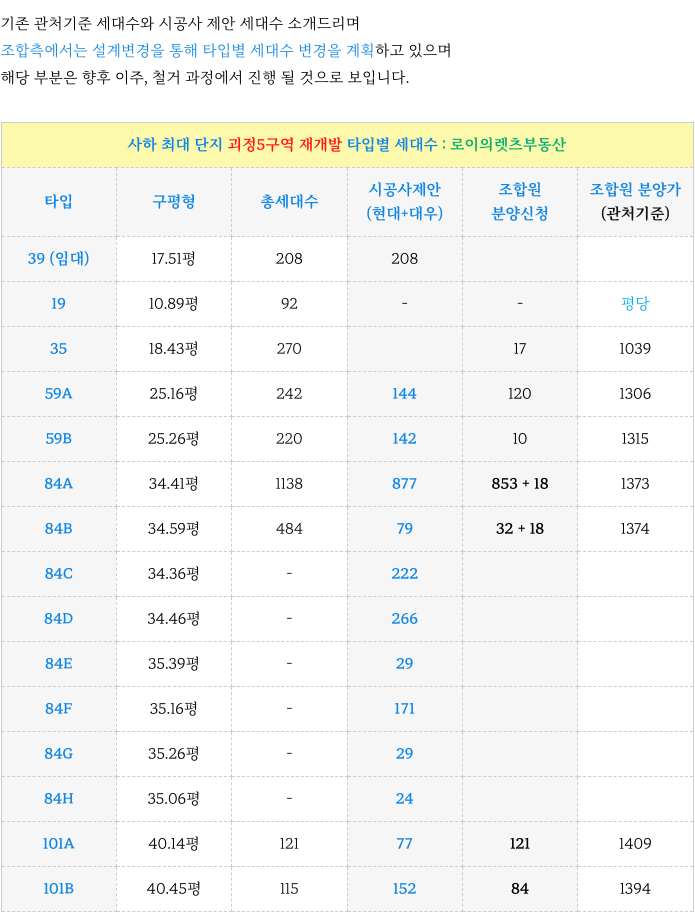 괴정5구역 재개발 현재 각 타입별 세대수 정리하였습니다.