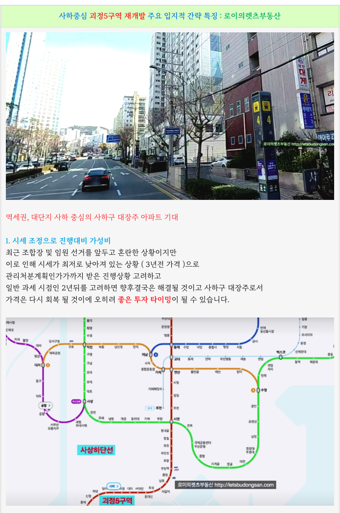 안녕하세요 로이의렛츠부동산 ( JAK 제이에이케이 부산 ) 입니다. 2025년 이주 시작 기대 사하대장 괴정...