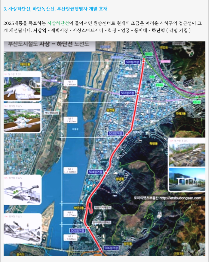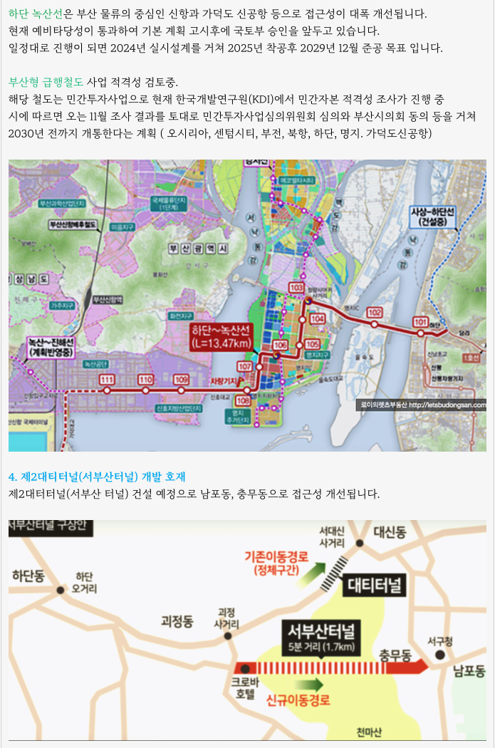 [ 개발 호재 : 제2대티터널, 사상하단선, 하단역 환승센터 개발 ]