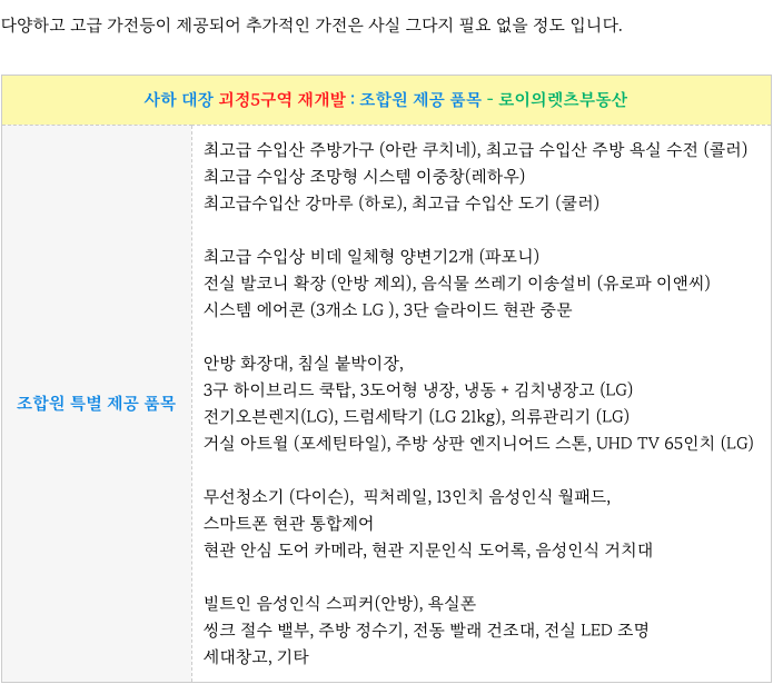 사하 대장 괴정5구역 조합원 분들에게 제공되는 품목들입니다.