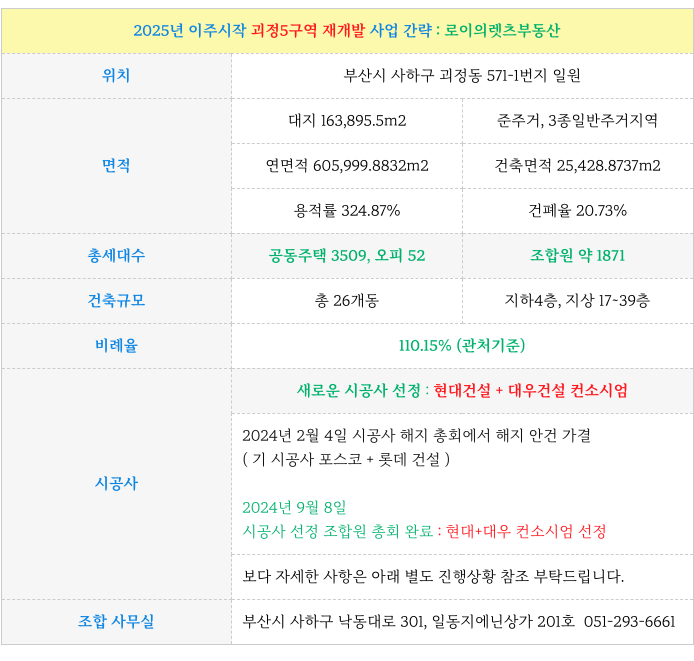 사하구 대장 괴정5구역 재개발 2025년 진행일정, 소식 체크 & 최저 타입별 매물 정리하였습니다.