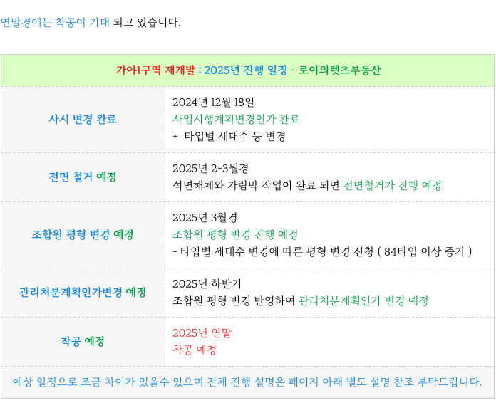 2~3월경 부터 전면 철거가, 3월경에는 조합원 평형 변경 신청을 진행이 예상되고