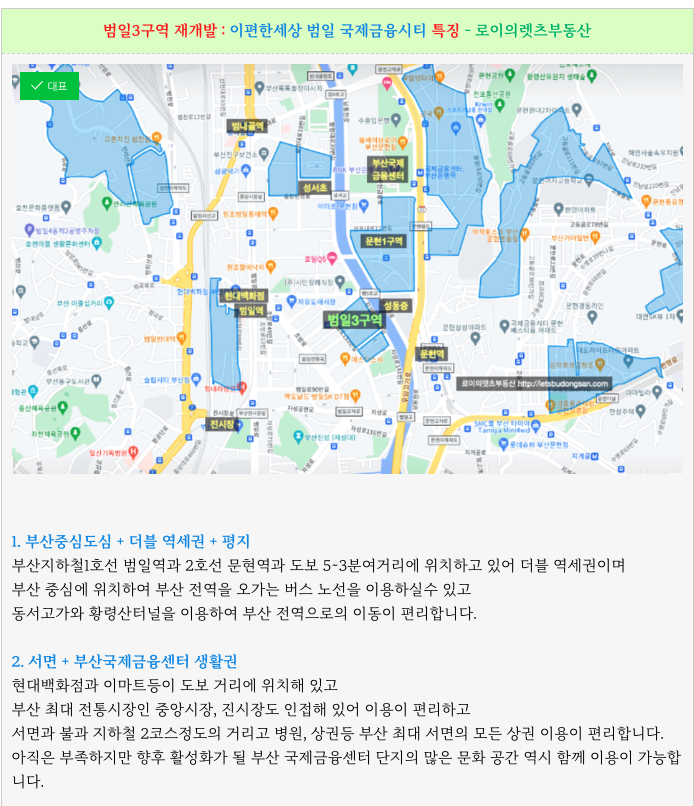 부산 전역 재개발에 대해 궁금하신 사항은 방문 또는 연락주시면 자세히 설명 드리겠습니다.