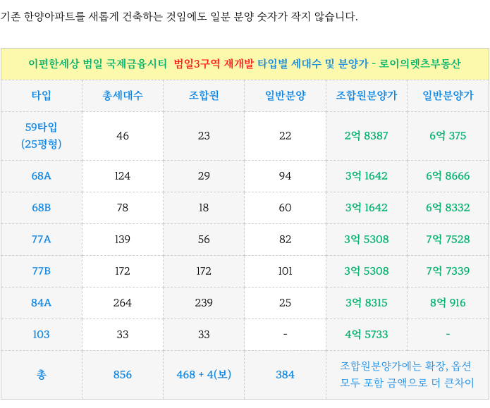 조합원 분양가와 일반 분양가는 상당한 차이를 감안하면 이해가 됩니다.