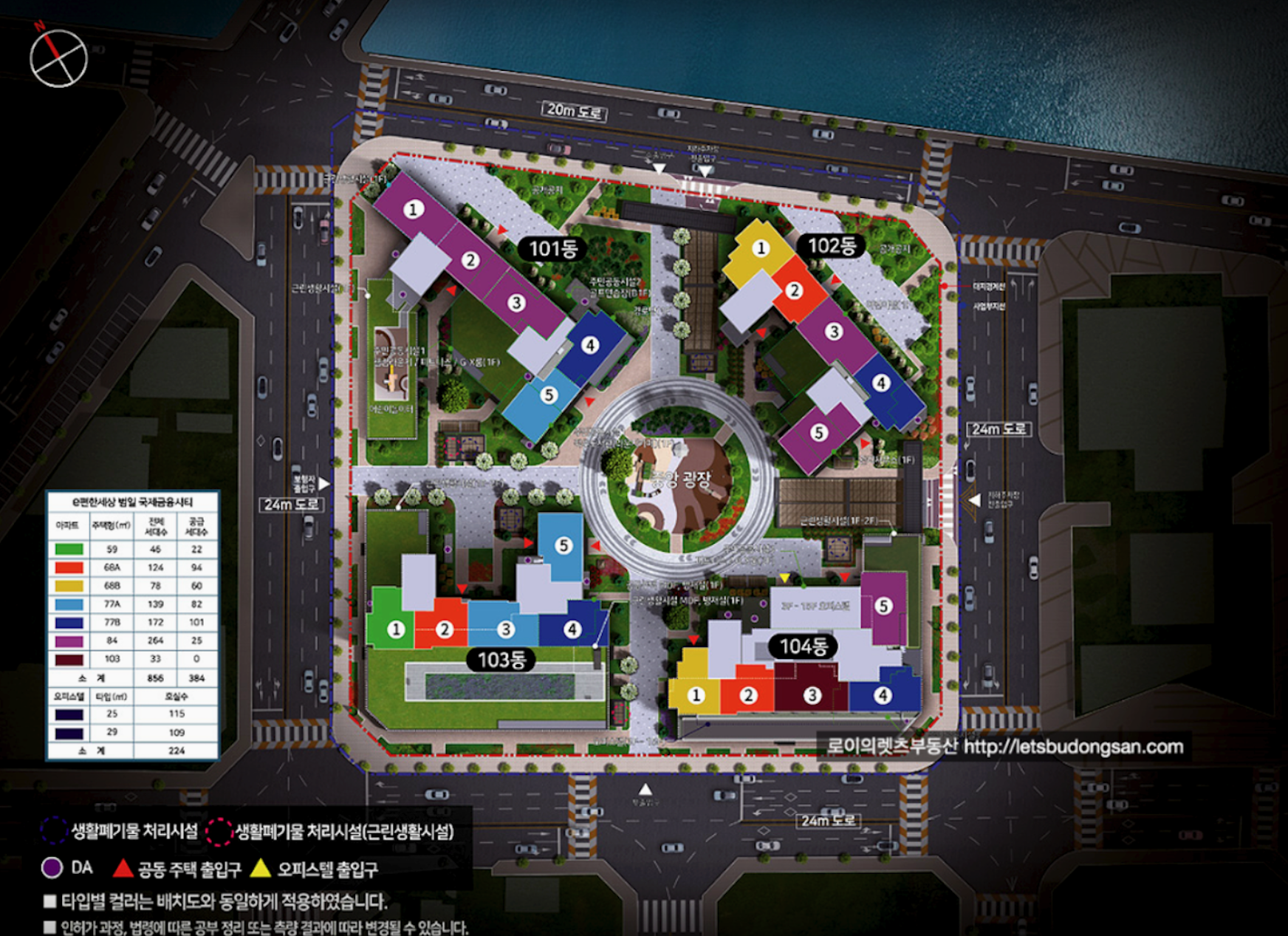 공동주택 856세대, 오피스텔 224호실, 상가 44개 호실로 중형급 단지로