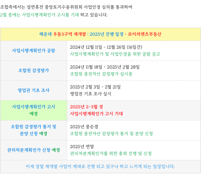 우동3구역 재개발 현재까지의 주요 진행 사항 & 예상 일정 정리등 추가 정보는 아래 페이지를 참고 부탁드립니다.