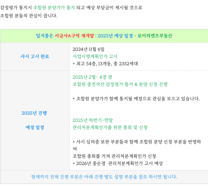서금사A구역 재개발 : 지금까지 주요 진행 사항 & 2025년 예상 일정 소개등 추가 정보는 아래 페이지 참고 부탁드립니다.