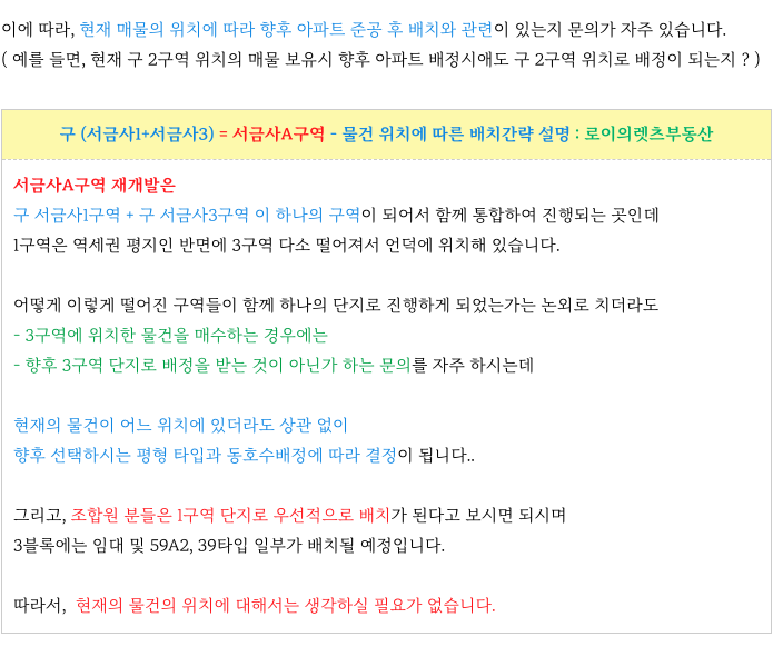 서금사A구역 재개발 구역 특징으로 매물 위치와 향후 배치 부분 간략 설명 드리겠습니다.