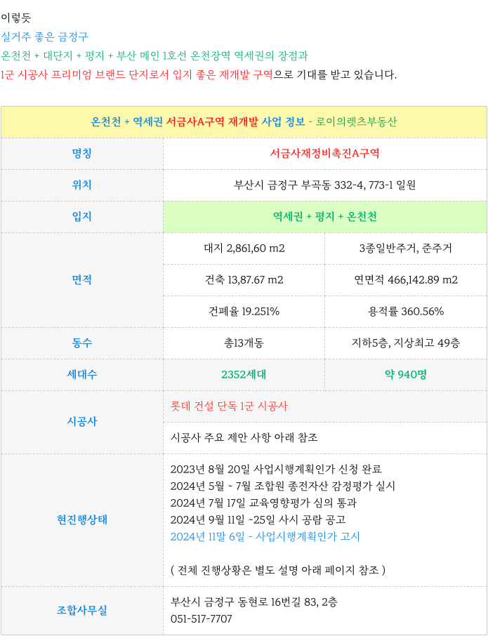 부산 전역 재개발에 대해 궁금하신 사항은 방문 또는 연락주시면 자세히 설명 드리겠습니다.
